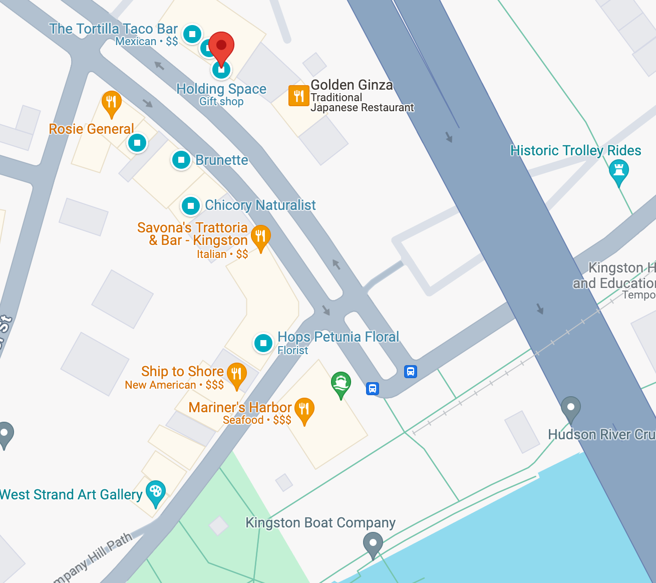 Holding Space is located at 34 Broadway in the Rondout Historic Waterfront District of Kingston, NY.